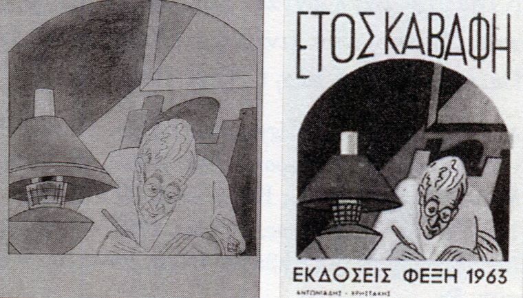 Ο Κ. γράφει σκυμμένος μπροστά στη λάμπα. Το σκίτσο χρησιμοποιήθηκε ως αναμνηστικό «γραμματόσημο» του έτους Καβάφη (1963) από τον Εκδοτικό Οίκο Γ. Φέξη και κυκλοφόρησε σε 500.00 αντίτυπα. Πβ. Δ1571.